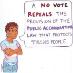 Hey everyone! I’m gonna talk a bit about this. I’m from MA and work/ed with the YES on 3 campaign for a couple months! There’s so much misconception in the public’s eye about this bill and I would like you all to start conversations with people about this! I worked as a canvasser hitting some liberal areas as well as some conservative areas that reminded me why we need to fight so hard for this. It’s hard to be on the activist side of things without becoming very aware of how in need of guidance the community is about anything to do with lgbtqia+ peoples or our lives. I’ve talked to supporters who had similar misconceptions to conservatives not realizing how toxic they could be to the community. I’ve learned so much about the local view of us through this campaign and I’m honestly still worried about November. Please, have these conversations. Push your friends to be in those voting booths. Even if you’re not gonna vote for a delegate and don’t want to vote on anything else, please save our community from a dangerous future. So let’s start the conversation.